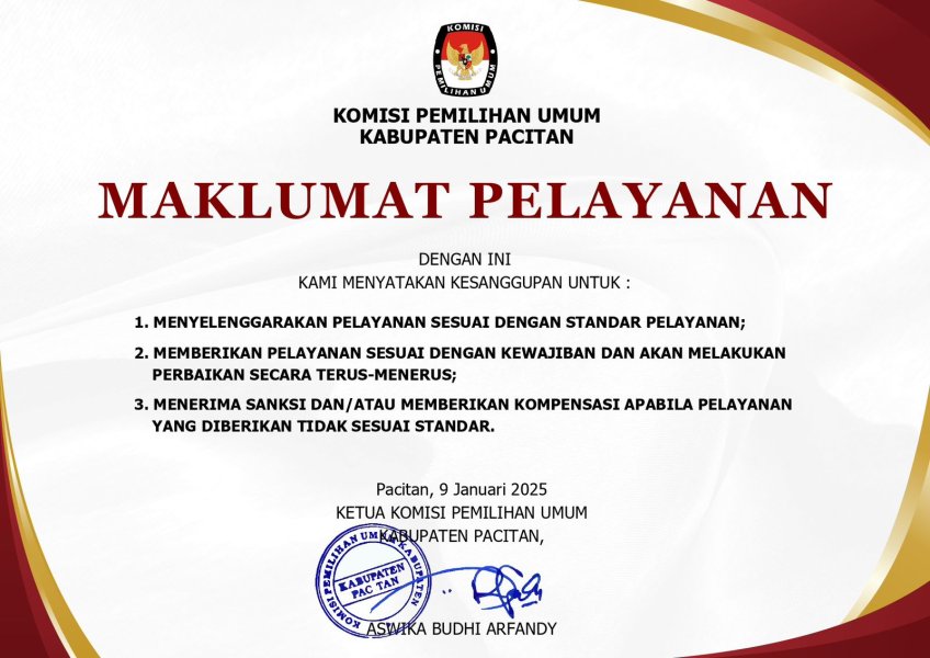 Maklumat Pelayanan KPU Kabupaten Pacitan