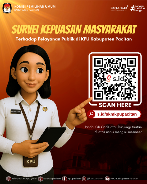 #TemanPemilih, dalam rangka pengukuran kepuasan masyarakat atas pelayanan di KPU Kabupaten Pacitan, dengan ini kami sampaikan hal-hal sebagai berikut :