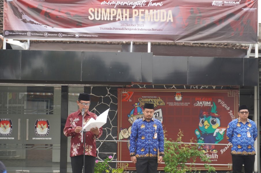 Dalam amanatnya, Iwit Widhi Santoso membacakan pidato Ketua KPU Republik Indonesia, Mochammad Afifuddin, yang menegaskan pentingnya meneladani semangat para pemuda 97 tahun silam.