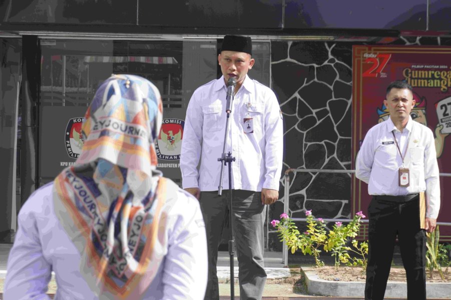 Apel pagi dipimpin oleh Anggota KPU Kabupaten Pacitan Divisi Perencanaan, Data, dan Informasi, Anang Ma’ruf, yang bertindak sebagai pembina apel. Prosesi berlangsung tertib dan penuh penghormatan melalui pengibaran Bendera Merah Putih, mengheningkan cipta, serta pembacaan Pancasila, Undang-Undang Dasar Negara Republik Indonesia Tahun 1945, dan Panca Prasetya Korps Pegawai Republik Indonesia (Korpri).