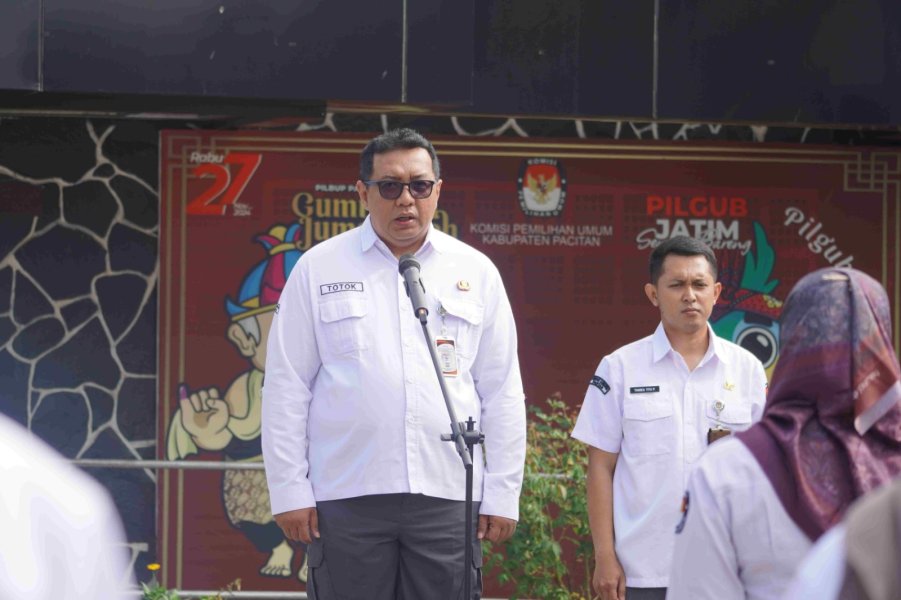 Apel pagi dipimpin oleh Sekretaris KPU Kabupaten Pacitan Suharto (Totok), dan berlangsung khidmat. Rangkaian kegiatan diawali dengan penghormatan kepada Bendera Merah Putih, dilanjutkan dengan mengheningkan cipta, pembacaan Pancasila, Undang-Undang Dasar Negara Republik Indonesia Tahun 1945, serta Panca Prasetya Korps Pegawai Republik Indonesia (Korpri).