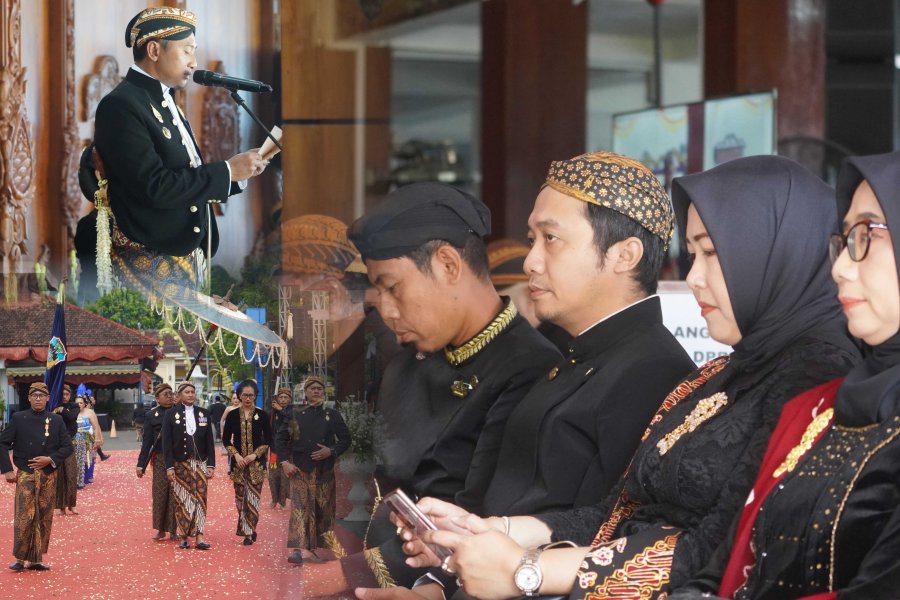 Prosesi peringatan berlangsung khidmat. Kirab Bupati Pacitan Indrata Nur Bayuaji bersama istri menuju pendopo kabupaten menjadi pembuka rangkaian acara. Lantunan gending Jawa semakin menambah suasana sakral dan penuh makna.
