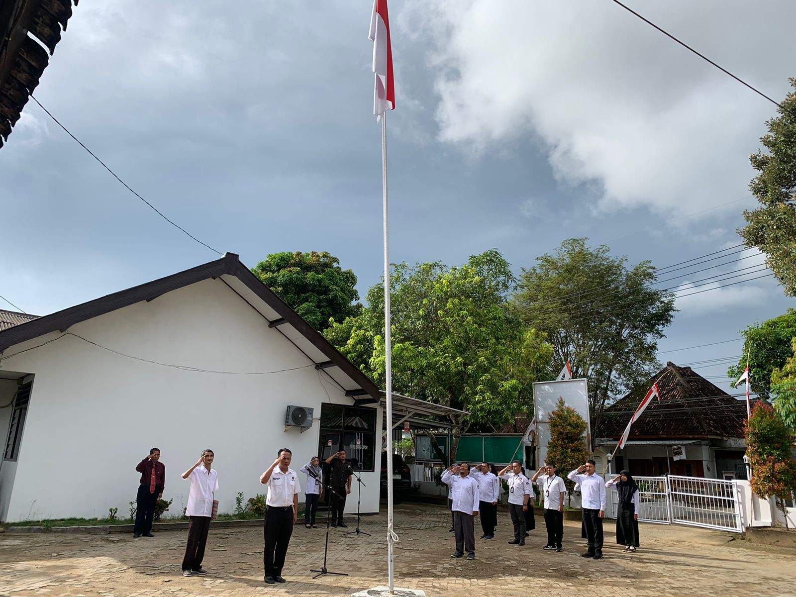 Kegiatan diawali dengan penghormatan kepada Bendera Merah Putih diiringi Lagu Kebangsaan Indonesia Raya, pembacaan UUD 1945 dan Panca Prasetya Korp Pegawai Republik Indonesia oleh petugas.