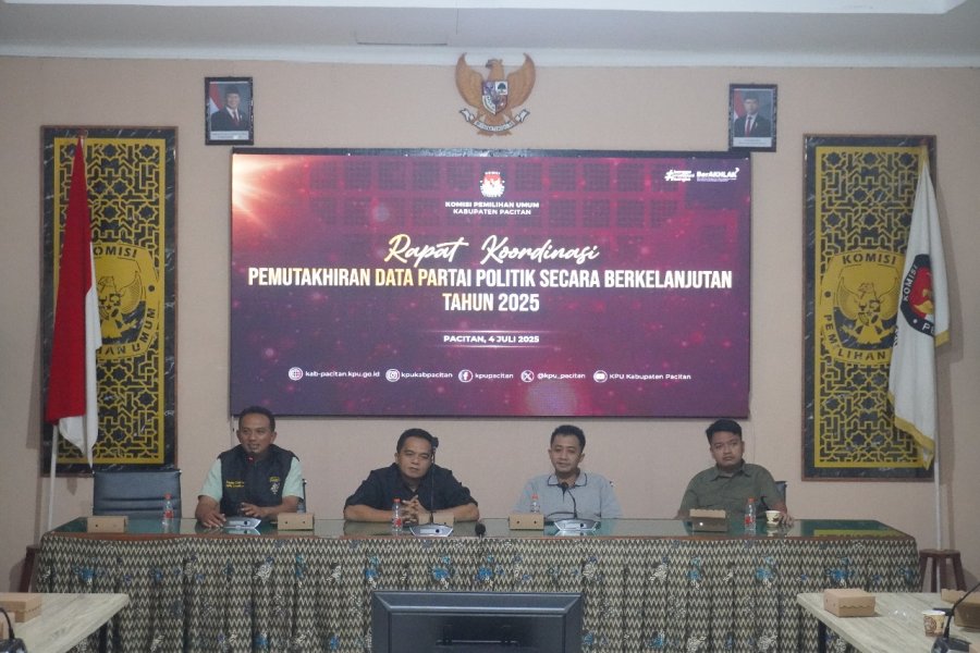 Pacitan, kab-pacitan.kpu.go.id - Komisi Pemilihan Umum (KPU) Kabupaten Pacitan menggelar Rapat Koordinasi Pemutakhiran Data Partai Politik secara Berkelanjutan Tahun 2025, bertempat di Rumah Pintar Pemilu (RPP) KPU Kabupaten Pacitan, Jumat (4/7/2025).