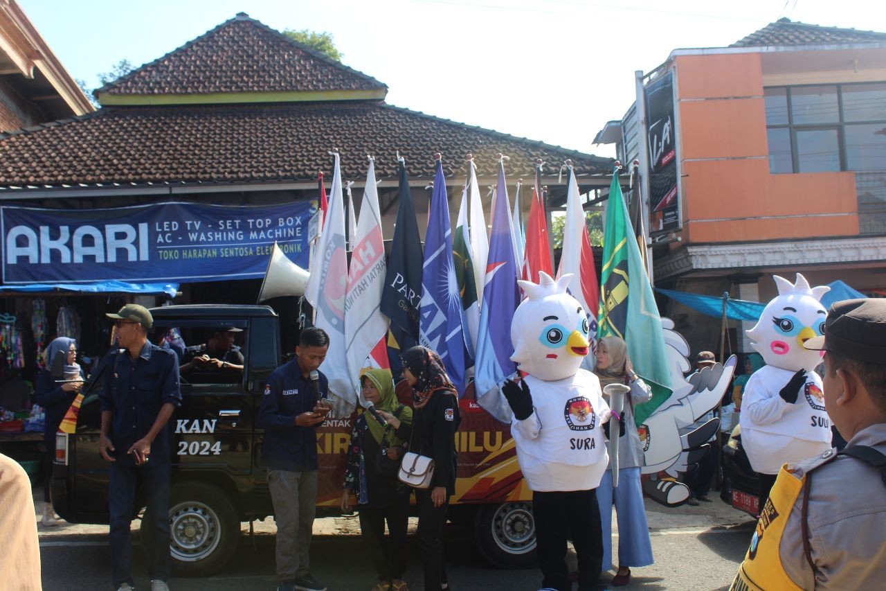 Pacitan – kab-pacitan.kpu.go.id - Dalam rangka menyemarakkan pesta demokrasi di tanggal 14 Februari 2023 mendatang, Komisi Pemilihan Umum (KPU) Kabupaten Pacitan bersama Panitia Pemilihan Kecamatan (PPK) Tulakan dan PPK Kebonagung melakukan sosialisasi pendidikan pemilih di Pasar Ketro, Kecamatan Kebonagung, Kabupaten Pacitan pada Rabu (19/07/2023). Dalam momentum tersebut, Sulis Styorini, Ketua KPU Kabupaten Pacitan turut hadir dan memberikan arahan bersama dua komisioner KPU Pacitan yakni Agus Susanto dan Eko Setiawan. Sosialisasi dimulai pada pukul 09.00 WIB dengan berbagai agenda yang variatif.