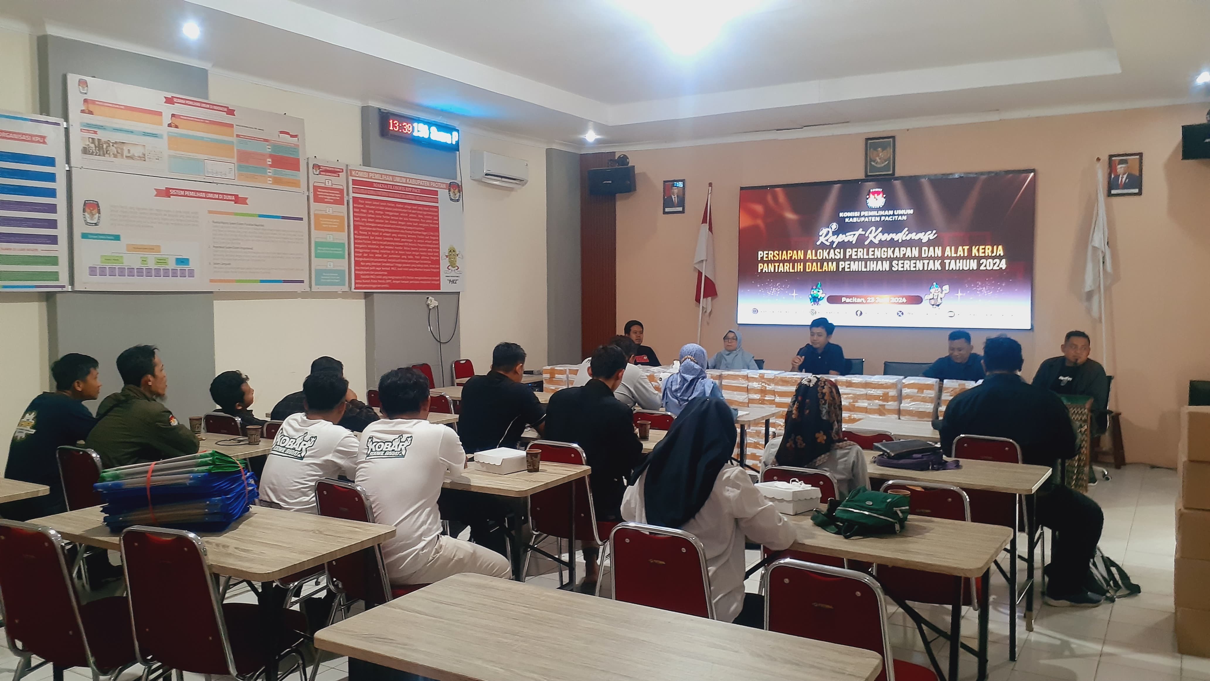 Pacitan, kab-pacitan.kpu.go.id - Komisi Pemilihan Umum (KPU) Kabupaten Pacitan melaksanakan rapat koordinasi (rakor) untuk mempersiapkan alokasi perlengkapan alat kerja Panitia Pemutakhiran Data Pemilih (Pantarlih) dalam rangka Pemilihan Serentak Tahun 2024. Acara tersebut dihadiri oleh seluruh Panitia Pemilihan Kecamatan (PPK) yang membidangi logistik.