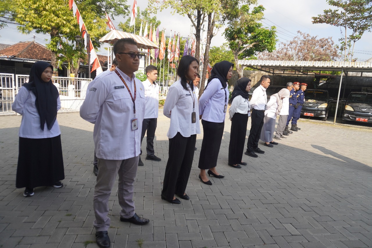 Prosesi apel dimulai khidmat dengan penghormatan kepada bendera Merah Putih, mengheningkan cipta, pembacaan Pancasila, UUD 1945, serta Panca Prasetya Korpri.