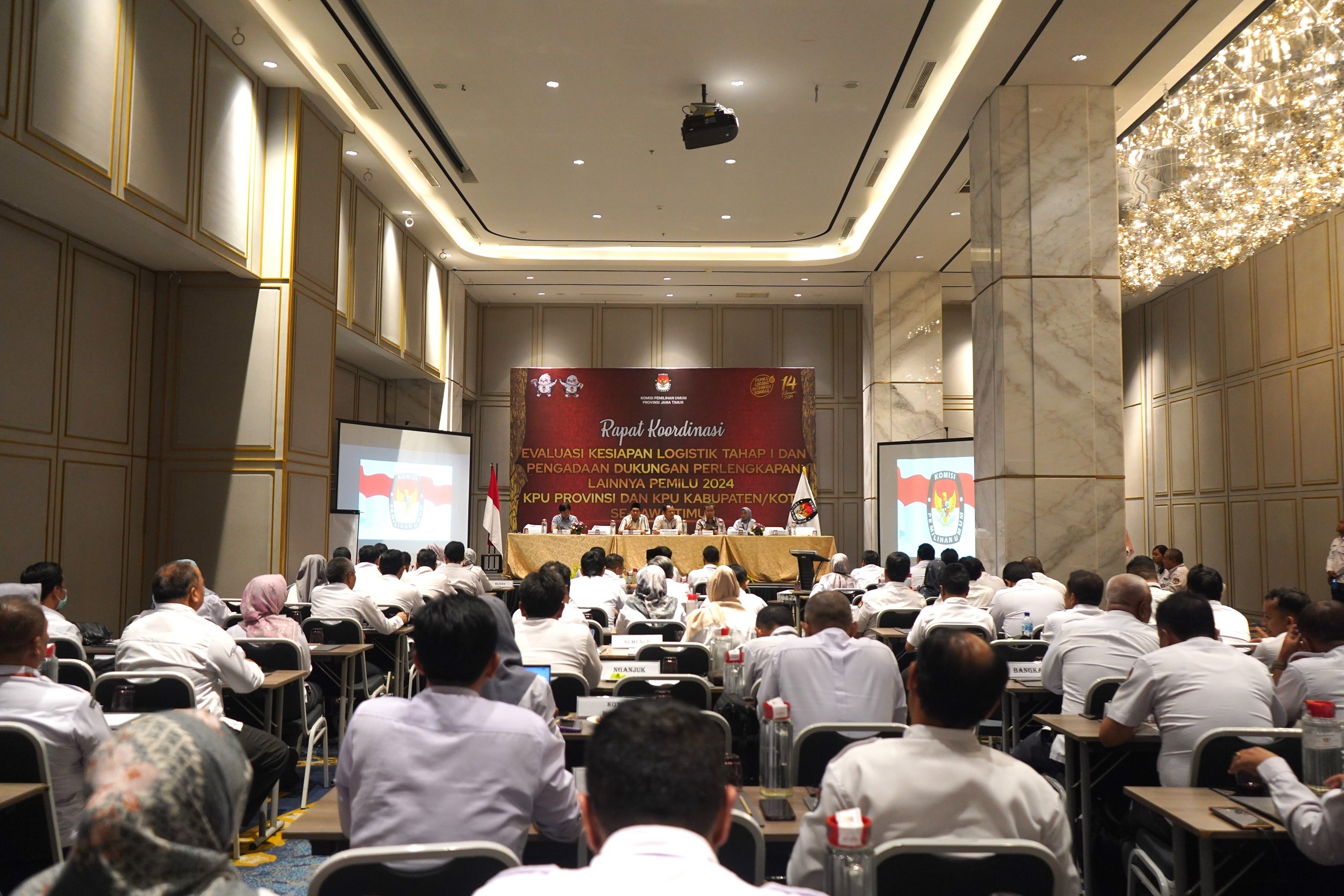 Surabaya, kab-pacitan.kpu.go.id - Komisi Pemilihan Umum Provinsi Jawa Timur (KPU Jatim) menggelar Rapat Koordinasi (Rakor) Evaluasi Kesiapan Logistik Tahap I dan Pengadaan Dukungan Perlengkapan Lainnya untuk Pemilu Tahun 2024 pada Kamis, 2 November 2023.