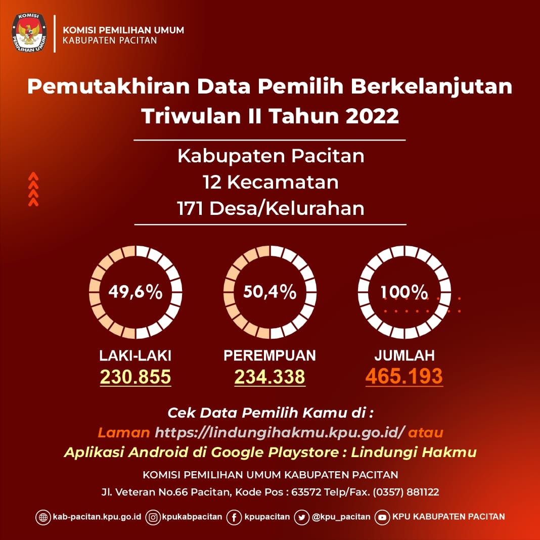 PEMUTAKHIRAN DATA PEMILIH BERKELANJUTAN TRIWULAN 2 TAHUN 2022 KABUPATEN PACITAN