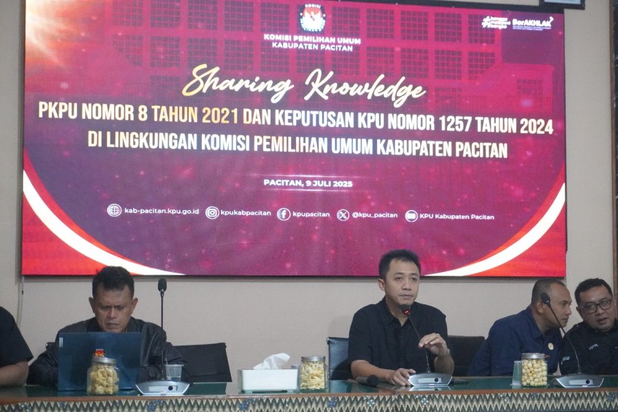 Pacitan, kab-pacitan.kpu.go.id — Komisi Pemilihan Umum (KPU) Kabupaten Pacitan menggelar kegiatan Knowledge Sharing pada Rabu (9/7/2025), bertempat di Rumah Pintar Pemilu (RPP) KPU Kabupaten Pacitan. Kegiatan ini membahas Peraturan Komisi Pemilihan Umum Nomor 8 Tahun 2021 tentang Perubahan atas Peraturan Komisi Pemilihan Umum Nomor 2 Tahun 2021 tentang Tata Naskah Dinas Komisi Pemilihan Umum, Komisi Pemilihan Umum Provinsi, dan Komisi Pemilihan Umum Kabupaten/Kota dan Keputusan Komisi Pemilihan Umum Nomor 1257 Tahun 2024 tentang Kode Klasifikasi Arsip dan Pengkodean Naskah Dinas di Komisi Pemilihan Umum, Komisi Pemilihan Umum Provinsi, dan Komisi Pemilihan Umum Kabupaten/Kota. Acara diikuti oleh perwakilan dari seluruh subbagian sekretariat, masing-masing mengirimkan tiga staf.