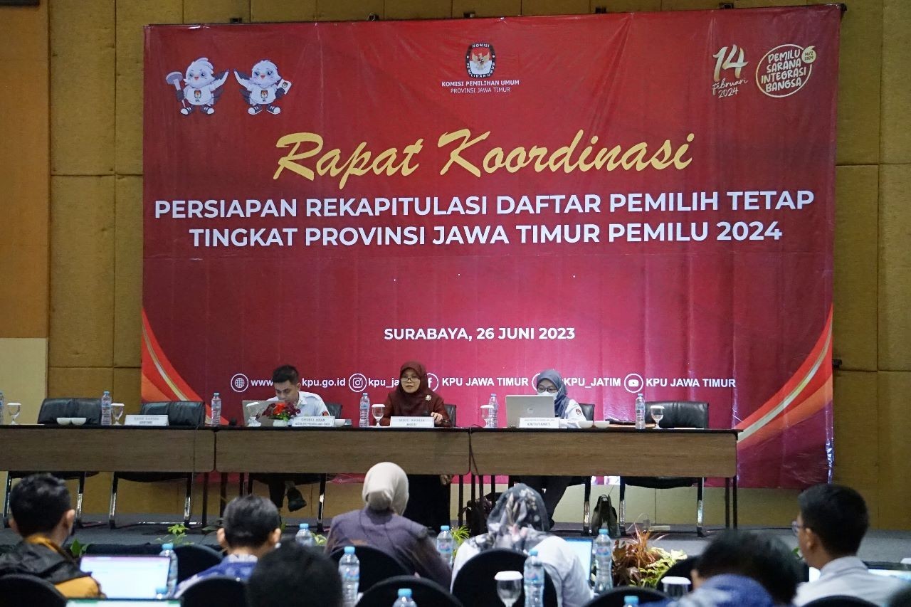 "Sesuai jadwal dan tahapan penyelenggaraan Pemilu Tahun 2024, KPU Provinsi melaksanakan pleno rekapitulasi DPT Pemilu 2024 mulai 27 hingga 29 Juni 2023. Untuk KPU Jatim akan digelar besok," kata Nurul.