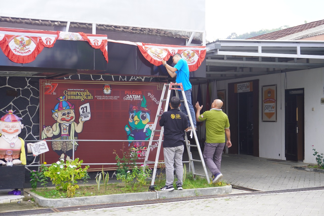 Setelah senam, kegiatan dilanjutkan dengan kerja bakti membersihkan dan menghias area kantor sebagai persiapan menyambut HUT RI ke-80. Seluruh keluarga besar KPU Kabupaten Pacitan terlibat aktif dalam pemasangan ornamen dan dekorasi bertema kemerdekaan.