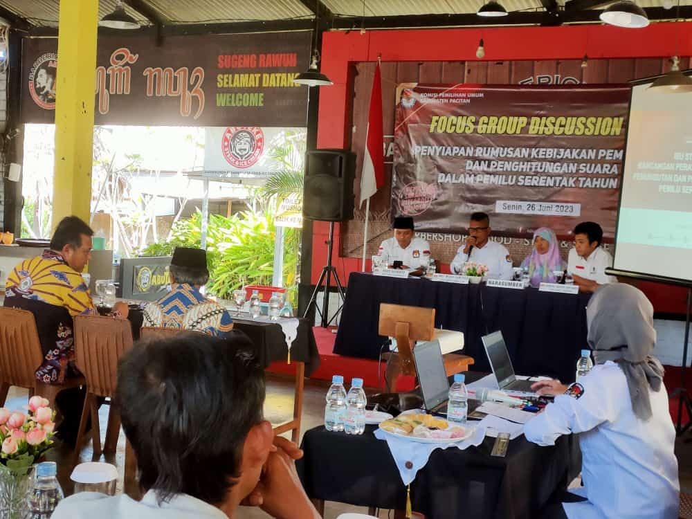 Iwit Widhi Santoso, saat membuka acara menuturkan kegiatan FGD sengaja dilaksanakan untuk mendapatkan masukan-masukan dan aspirasi dari peserta. “Kegiatan ini untuk menyamakan pemahaman, persepsi sekaligus merumuskan kebijakan rancangan Peraturan KPU (PKPU) tentang Pemungutan dan Penghitungan Suara (Tungsura) pada Pemilu Serentak 2024,” kata Divisi Sosdikiklih Parmas dan SDM KPU Pacitan ini.