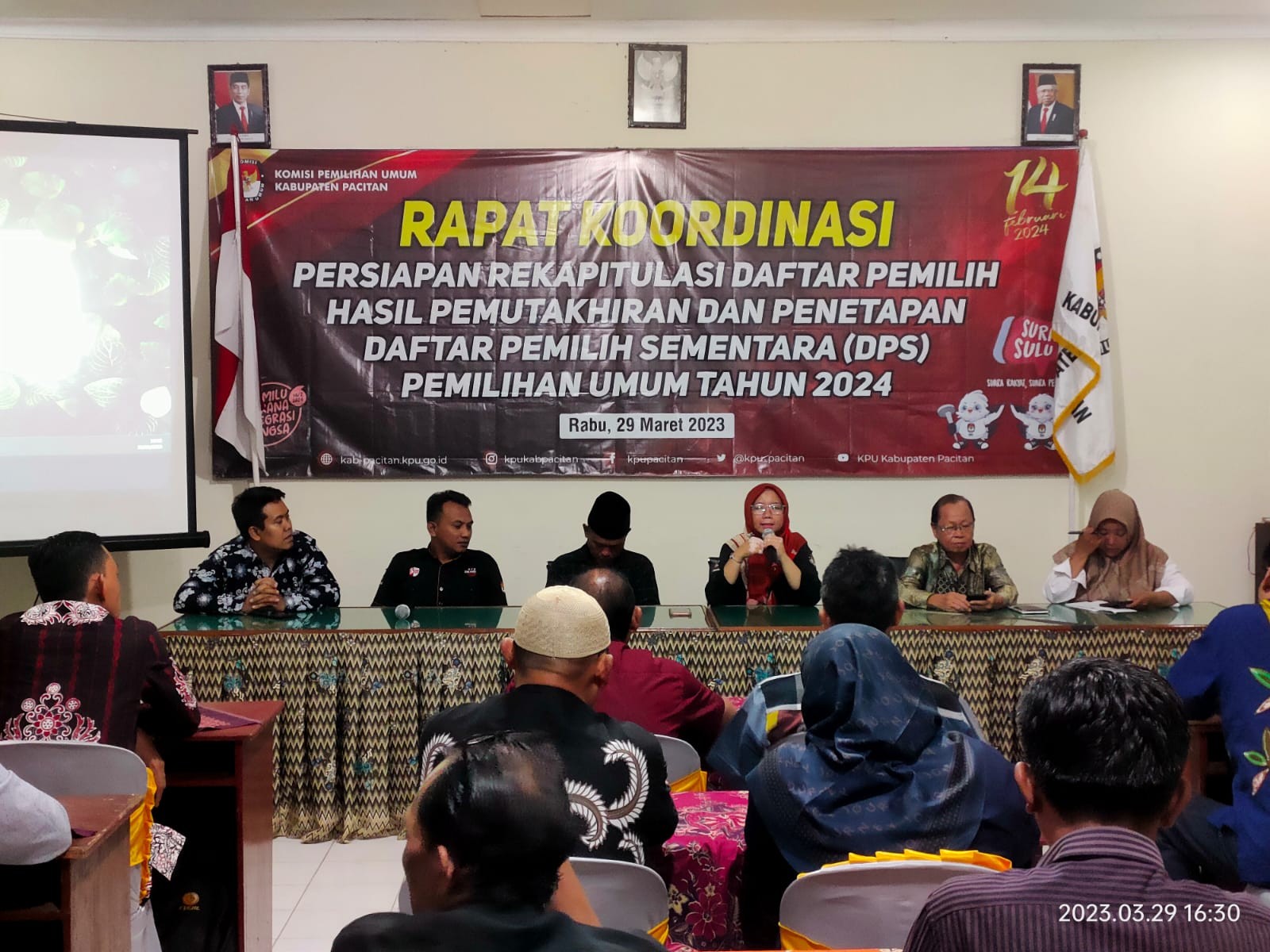 Pacitan, kab-pacitan.kpu.go.id – Ketua Badan Pengawas Pemilu (Bawaslu) Pacitan, Berty Stevanus HRW, mengatakan Bawaslu dan Komisi Pemilihan Umum (KPU) adalah penyelenggara Pemilu 2024. “Sing penting jagongan. Karena itu, perlu komunikasi dan koordinasi disetiap tingkatan,” kata Berty Stefanus HRW saat memberikan pengarahan dalam acara Rapat Koordinasi dan sinkronisasi Penyusunan Daftar Pemilih Sementara (DPS) untuk Pemilihan Umum Tahun 2024 dengan PPK Se-Kabupaten Pacitan, di Rumah Pintar Pemilu (RPP) KPU, Sabtu, (18/03/2023). Lebih lanjut, Berty mengatakan, kendati Bawaslu – KPU sama-sama penyelenggara, namun tugasnya berbeda. KPU melaksanakan teknis penyelenggaraan, sedangkan Bawaslu mengawasi pelaksanaan penyelenggaraannya. “Karena itu, terkadang, di lapangan ada perbedaan persepsi dalam setiap tahapan Pemilu,” ungkap mantan Sekretaris KPU Pacitan ini. Menyikapi hal itu, perlunya penyamaan persepsi melalui komunikasi dan koordinasi disemua tingkatan. Terlebih, bagi badan adhoc di kecamatan dan di desa. Sehingga, jika ada perbedaan persepsi, segera dikomunikasikan. “Usahakan, setiap permasalahan selesai di desa atau di kecamatan,” harapnya. Perlu diketahui, Rapat Koordinasi dan sinkronisasi Penyusunan Daftar Pemilih Sementara (DPS) untuk Pemilihan Umum Tahun 2024, selain dihadiri Ketua Bawaslu, Berty Stevanus HRW, Anggota Bawaslu Agus Hariyanto serta Anggota KPU, Agus Susanto, Eko Setiawan, Iwit W. Santoso dan Aswika Budhi Arfandy. (bakohumaskpupacitan/mut)