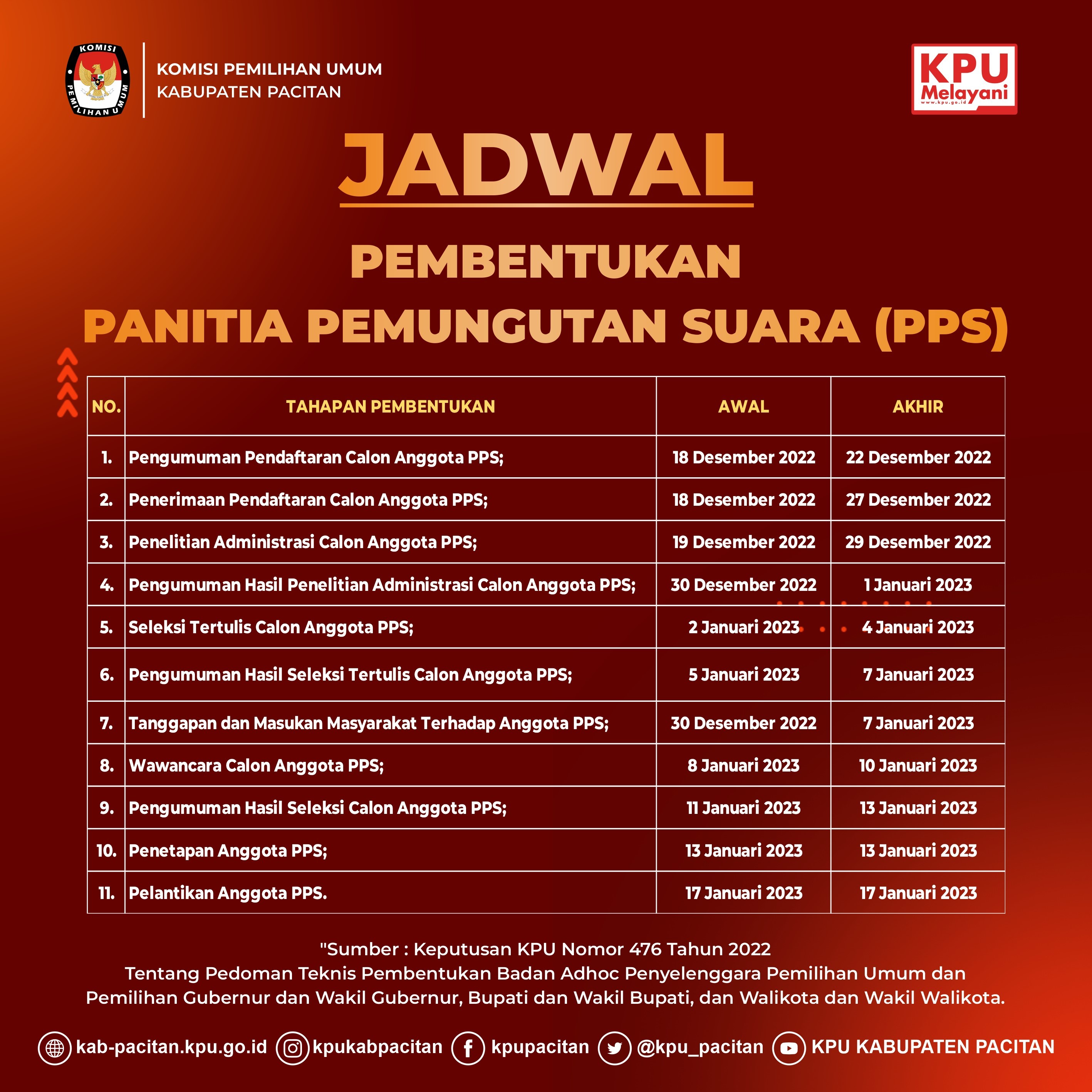 Pacitan, kab-pacitan.kpu.go.id - Komisi Pemilihan Umum (KPU) Kabupaten Pacitan melaksanakan seleksi tertulis manual bagi calon Panitia Pemungutan Suara (PPS) Pemilu 2024, Jumat (6/1/2023). Seleksi yang diikuti 1.407 orang tersebut dihelat dilima lokasi berbeda. Yakni, di SMK PGRI Donorojo, untuk peserta dari Kecamatan Donorojo, Punung dan Pringkuku. SMPN 1 Kebonagung, menampung peserta tes dari Kecamatan Pacitan dan Kebonagung. SMKN Ngadirojo untuk peserta Kecamatan Sudimoro, Ngadirojo dan Tulakan. SMPN 2 Arjosari untuk peserta Kecamatan Arjosari dan Tegalombo. Sedangkan peserta dari Kecamatan Nawangan-Bandar, dipusatkan di Monumen Pangsar Jendral Sudirman, Pakis Baru, Nawangan. “Perlu diketahui, dari 1.497 orang yang lolos seleksi administrasi sebelumnya, ada 97 orang yang tidak hadir mengikuti seleksi tertulis ini,” kata Ketua KPU Pacitan, Sulis Styorini. Ditambahkan, pembagian dilima zona pelaksanaan seleksi tertulis juga mempertimbangkan kondisi geografis di Pacitan. Terlebih, beberapa lembaga pendidikan mendukung ruang kelasnya dipergunakan seleksi tertulis. Bahkan, ada juga yang menggunakan ruang pertemuan di Situs Monumen Pangsar Jendral Sudirman, Nawangan. “Alhamdulillah, pelaksanaan lancar,” tandas Sulis Styorini. Terkait pelaksanaan seleksi, peserta diberikan 75 soal yang langsung dari KPU RI, dengan jawaban pilihan ganda, dalam waktu 90 menit. Pun demikian, ada empat type soal. Sehingga, walaupun duduk berdekatan, namun soalnya berbeda-beda. Berikut laporan seleksi tertulis dari masing-masing zona oleh Tim Bakohumas Panitia Pemilihan Kecamatan Zona Donorojo-Pringkuku-Punung Seleksi tertulis calon PPS di zona ini, dihadiri oleh Komisioner Aswika Budhi Arfandy dan tim sekretariat KPU Pacitan. Selain itu, kegiatan juga melibatkan anggota Panitia Pemilihan Kecamatan (PPK) dari Kecamatan Donorojo, Punung dan Pringkuku. Tidak itu saja, kegiatan seleksi juga dihadiri Ketua Bawaslu Pacitan, Berty Stefanus HRW, Panwascam dan forkopimca setempat. Kegiatan tes tertulis di zona ini, diikuti 250-an peserta calon anggota PPS. Zona Bandar-Nawangan Kegiatan seleksi tertulis di zona ini dikawal langsung Ketua KPU Kabupaten Pacitan, Sulis Styorini. Selain dibantu tim sekretariat, juga melibatkan anggota PPK Kecamatan Bandar dan Nawangan. Seleksi tertulis yang diikuti 168 calon anggota PPS ini juga dihadiri Anggota Bawaslu Pacitan, Mashuri. Tidak itu saja, Panwascam dari Kecamatan Bandar dan Nawangan juga melakukan pengawasan. Begitu juga Forkopimca turut memantau pelaksanaan tes tertulis PPSyang dilaksanakan di Auditorium Monumen Jenderal Soedirman Nawangan. Zona Ngadirojo, Tulakan dan Sudimoro Pelaksanaan seleksi tertulis di zona timur, Ngadirojo, Tulakan dan Sudimoro, dipusatkan di SMKN Ngadirojo, juga melaksanakan serentak seleksi tertulis calon anggota PPS untuk Pemilu 2024, Jum'at (6/1/ 2023). Pelaksanaan tes tertulis dikawal Komisioner KPU Pacitan, Eko Setiawan bersama tim sekretariat. Selain itu, juga melibatkan anggota PPK Kecamatan Tulakan, Ngadirojo dan Sudimoro. Seleksi tertulis juga dihadiri Anggota Bawaslu Pacitan, Sulami serta Panwascam dari Kecamatan Sudimoro, Ngadirojo dan Tulakan. Tidak itu saja, unsur Forkopimca juga turut memantau pelaksanaan tes tulis tersebut. Zona Arjosari dan Tegalombo Sementara itu, pelaksanaan seleksi tertulis Kecamatan Arjosari dan Tegalombo, dihelat di SMPN 2 Arjosari, Jum'at, 6 Januari 2023, dimulai pada pukul 08.45 WIB. Kegiatan ini Komisioner Iwit W Santoso, bersama Sekretaris KPU Kabupaten Pacitan Bambang Sutejo. Kegiatan seleksi juga melibatkan PPK Arjosari dan PPK Tegalombo. Pacitan-Kebonagung Sedangkan, seleksi tertulis zona Kecamatan Kebonagung dan Kecamatan Pacitan, dipusatkan di SMPN I Kebonagung. Jumlah keseluruhan peserta calon PPS yang mengikuti seleksi tertulis dari Kecamatan Pacitan dan Kebonagung adalah 387. Dengan rincian, Kecamatan Pacitan berjumlah 243 peserta dan dari Kecamatan Kebonagung 144 peserta. Seleksi yang dilaksanakan mulai pukul 09.00 sampai dengan 10.30 WIB berjalan dengan tertib dan lancar. Komisioner KPU Agus Susanto, S.Pd., MM. bersama tim sekretariat turut hadir dan mendampingi pelaksanaan seleksi tertulis tersebut. (Tim Bakohumas KPU Pacitan)