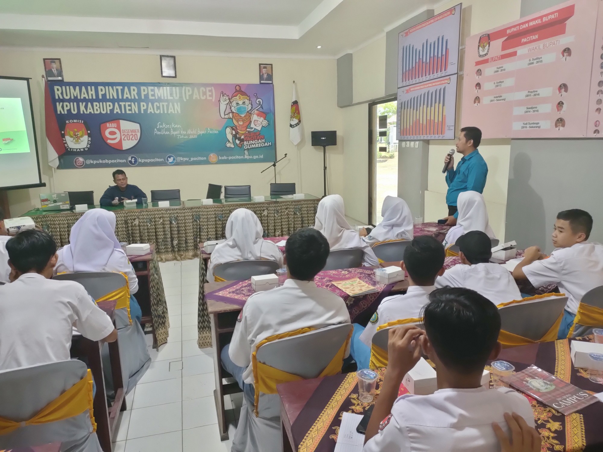 Sementara itu, dalam paparannya, Iwit Widhi Santoso, anggota KPU Pacitan, Divisi Sosialisasi, Pendidikan Pemilih, Partisipasi Masyarakat dan SDM, menyampaikan sejarah demokrasi di Indonesia, pengertian dan pemahaman demokrasi.