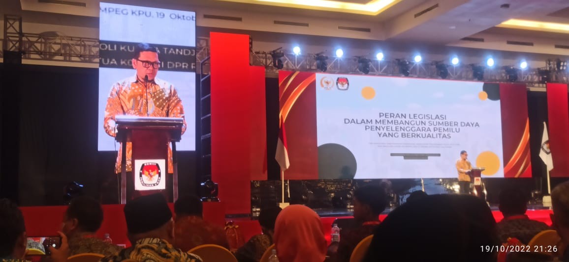Disisi lain, Eko Setiawan, anggota KPU Pacitan, Divisi Perencanaan, Data dan Informasi mengurai mengenai syarat menjadi pemilih dalam pemilu maupun pemilihan hingga sistem informasi data pemilih (Sidalih). (Tim Bakohumas KPU Pacitan)