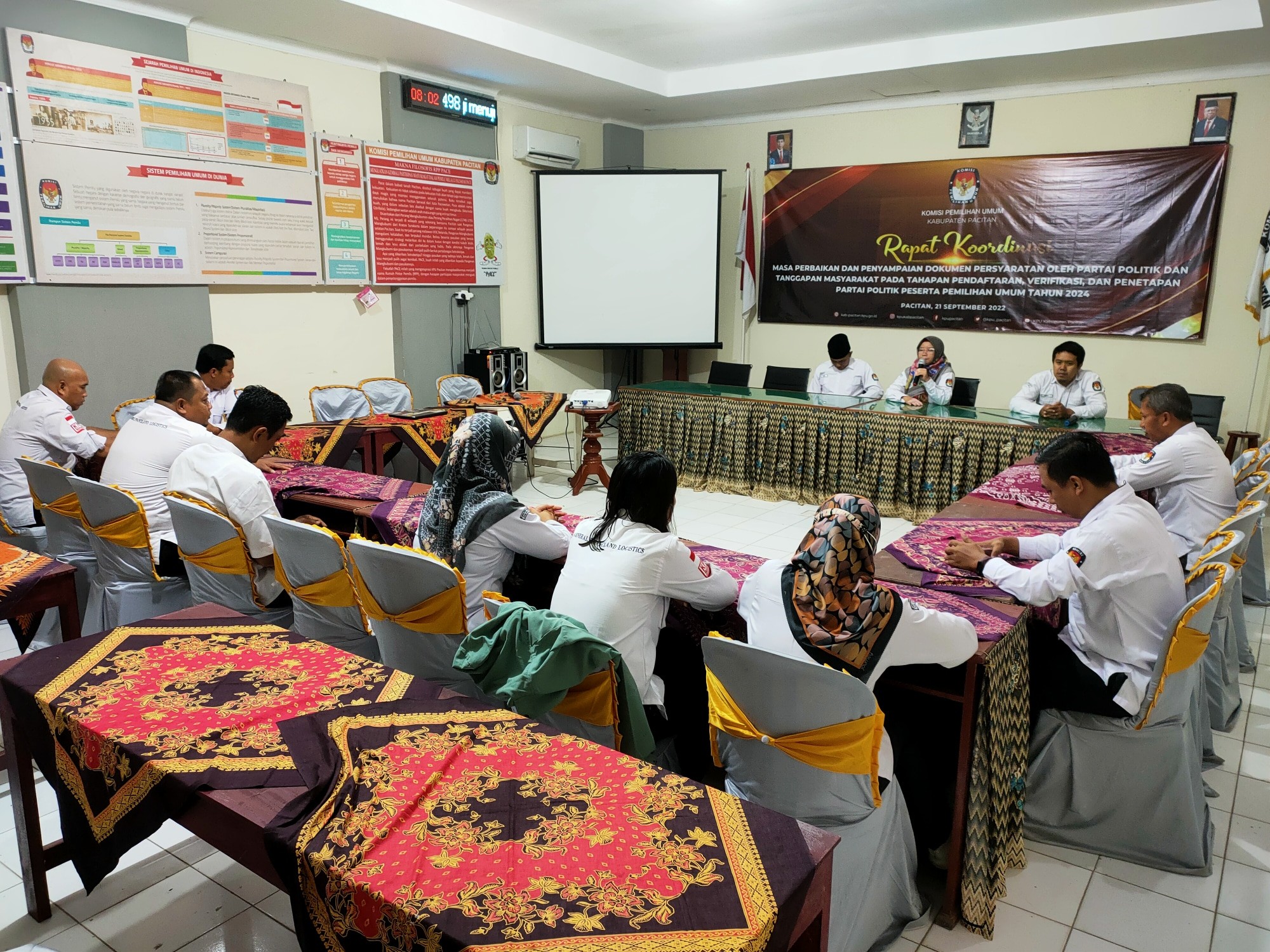 Sidoarjo, kab-pacitan.kpu.go.id - Komisi Pemilihan Umum Provinsi Jawa Timur (KPU Jatim) menggelar Rapat Koordinasi (Rakor) Dukungan Sistem Informasi Anggota KPU dan Badan Ad Hoc (SIAKBA), dalam Tahapan Pembentukan Badan Ad Hoc. Kegiatan yang dihelat selama dua hari, tanggal 25-26 September, dilaksanakan di Kantor KPU Sidoarjo, Jl. Raya Cemeng Kalang No. 1 Ngemplak, Cemeng Kalang, Sidoarjo.