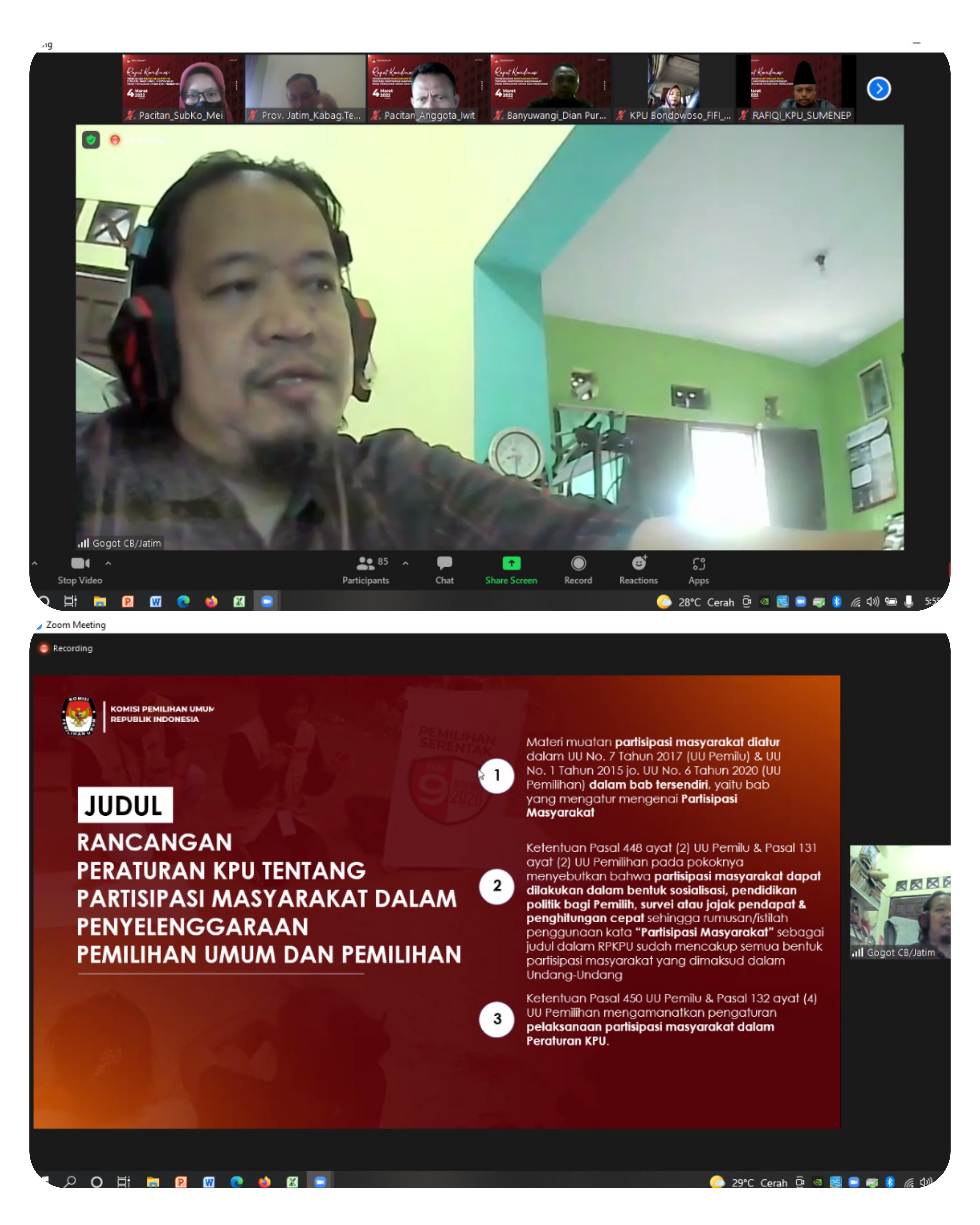 Pacitan, kab-pacitan.kpu.go.id – Memasuki Minggu pertama bulan Maret Komisi Pemilihan Umum (KPU) Kabupaten Pacitan melanjutkan giat road show pendidikan pemilih di Sekolah Madrasah Aliyah (MA) Al Anwar Pacitan, Senin (7/3/2022). Kegiatan yang menyasar pemilih pemula bertujuan memberikan pemahaman kepada pemilih pemula agar menjadi pemilih cerdas. Seperti halnya pelaksanaan di sekolah - sekolah lanjutan atas lainnya. Road show di MA Al Anwar, Ploso, Pacitan, berjalan lancar. Kegiatan yang dilakukan di dalam mushola setempat, diikuti puluhan santri dan santriwati. Komisioner KPU Pacitan, Iwit Widhi Santoso, menyampaikan ucapan terima kasih kepada pihak lembaga sekolah yang telah memberikan waktu dan kesempatan bagi KPU Pacitan melakukan pendidikan pemilih. "KPU Pacitan menyampaikan penghargaan yang luar biasa kepada pimpinan MA Al Anwar Pacitan yang sudah memfasilitasi kegiatan ini, " kata Iwit Dihadapan siswa - siswi, anggota KPU Pacitan, mengajak seluruh elemen pemilih pemula, khususnya para siswa di sekolah ini, agar menjadi pemilih cerdas. Pemilih cerdas yang dimaksud adalah pemilih yang peduli terhadap Pemilu dan Pemilihan serta menggunakan hak pilihnya dengan baik. Sehingga benar-benar menjadi pemilih yang berdaulat. Dalam menggunakan hak pilinya nanti Pemilih pemula juga harus selektif terhadap berita-berita yang ada. Sehingga, tidak terjebak dengan berita hoax, yang merugikan masyarakat. Disisi lain, politik uang juga perlu diperangi. Selanjutnya kegiatan road show di MA Al Anwar Pacitan ini di akhiri dengan penyerahan Buku Bunga Rampai dan Buku Tahapan Penyelenggaraan Pemilihan Serentak Tahun 2020 di Kabupaten Pacitan oleh KPU Kabupaten Pacitan kepada pihak sekolah. (Tim Bakohumas KPU Pacitan)