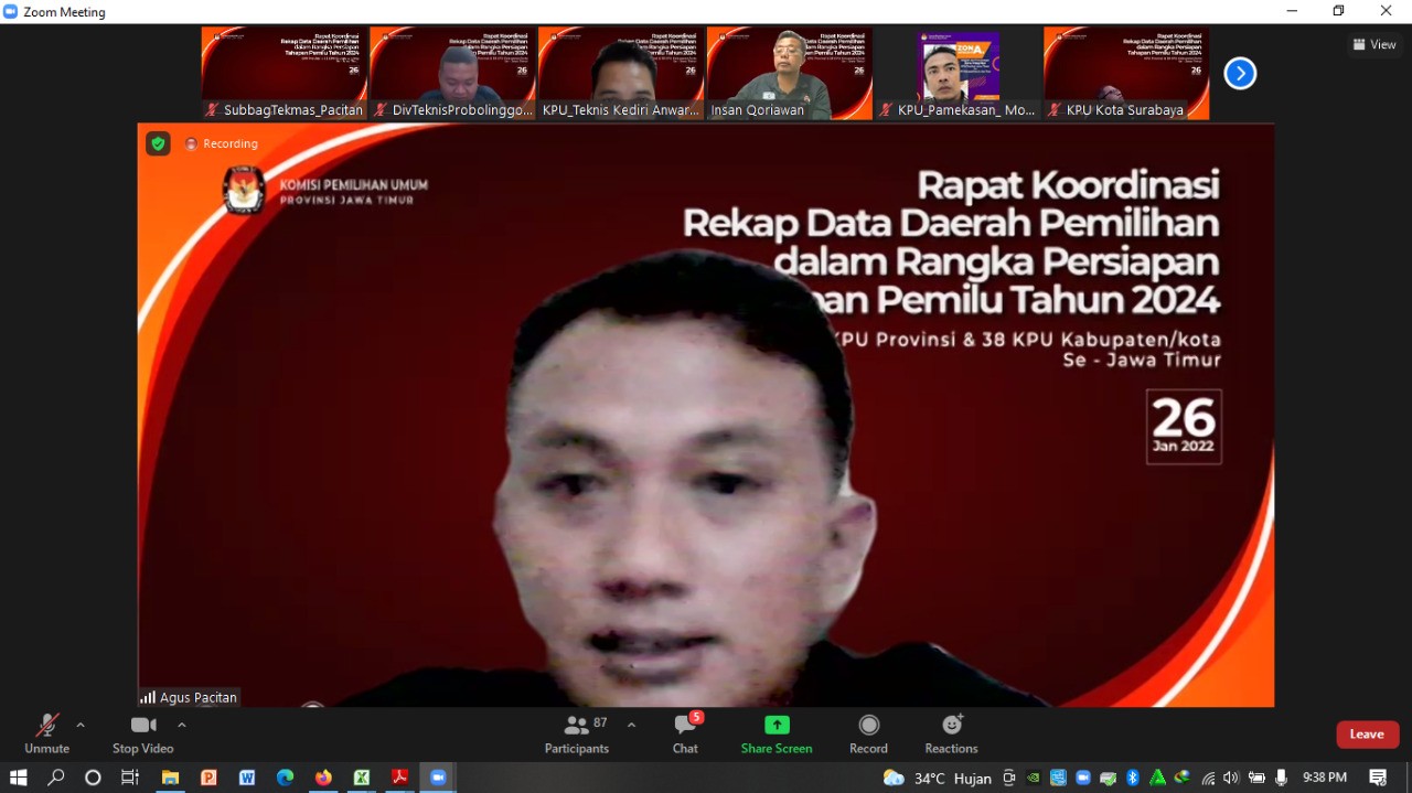 Pacitan, kab-pacitan.kpu.go.id – Komisi Pemilihan Umum (KPU) Kabupaten Pacitan kbali melaksanakan apel rutin setiap hari Senin (31/1/2022). Kegiatan yang dilaksanakancara hybrid di ruang Rumah Pintar Pemilu “Pace”. Dengan rimcian 75% Karyawan/Karyawati di lingkungan Sekretariat KPU Kabupaten Pacitan yang melaksanakan tugas dikantor (WFO) dan 25% karyawan/karyawati yang melaksanakan tugas dari rumah (WFH). Dalam arahannya, Iwit W. Santoso mengajak semua karyawan/karyawati dilingkungan KPU Pacitan agar bersiap menghadapi Pemilu dan Pemilihan Serentak 2024. Sebab, pemerintah sudah menentukan pada hari Rabu 14 Februari 2024 dilaksanakan pemungutan suara untuk Penyelenggaraan pemungutan suara Pemilihan Umum Serentak. Baik untuk memilih Presiden dan Wakil Presiden, Anggota DPR RI, DPRD Provinsi, DPRD Kabupaten/ Kota serta Anggota DPD RI. Sedangkan untuk pemungutan suara serentak nasional dalam Pemilihan Gubernur dan Wakil Gubernur, Bupati dan Wakil Bupati, Walikota dan Walikota dilaksanakan pada hari Rabu tanggal 27 November 2024. “kita harus siapkan fisik dan mental, jaga kekompakan dan soliditas antar komponen di lingkungan KPU Kabupaten Pacitan. Selain itu juga perlunya menambah wawasan kita tentang kepemiluan," jelas Iwit W. Santoso. Perlu diketahui bahwa apel pagi dilakukan sebagai tindak lanjut himbauan Komisi Pemilihan Umum Republik Indonesia dengan nomor Surat : 52 / SDM.03.05/04/2022 Tanggal 21 Januari 2022 perihal Himbauan Apel Pagi di Lingkungan Komisi Pemilihan Umum Republik Indonesia. Adapun tujuan utamanya adalah memelihara dan meningkatkan rasa kebangsaan dan cinta tanah air, serta pengabdian terhadap negara dan rakyat Indonesia serta menumbuhkan disiplin Pegawai Aparatur Sipil Negara di Lingkungan KPU RI, KPU Propinsi dan KPU Kabupaten /Kota. (Tim Bakohumas KPU Pacitan)