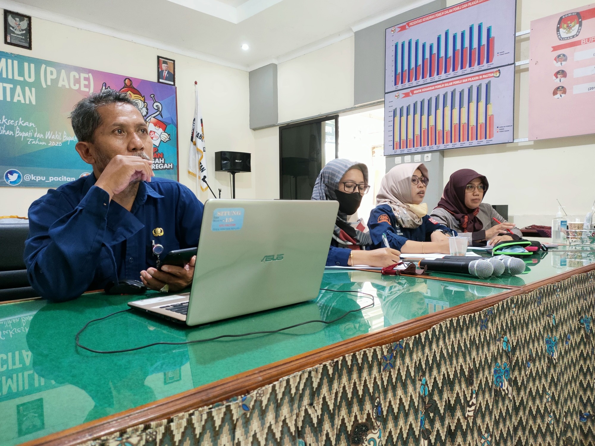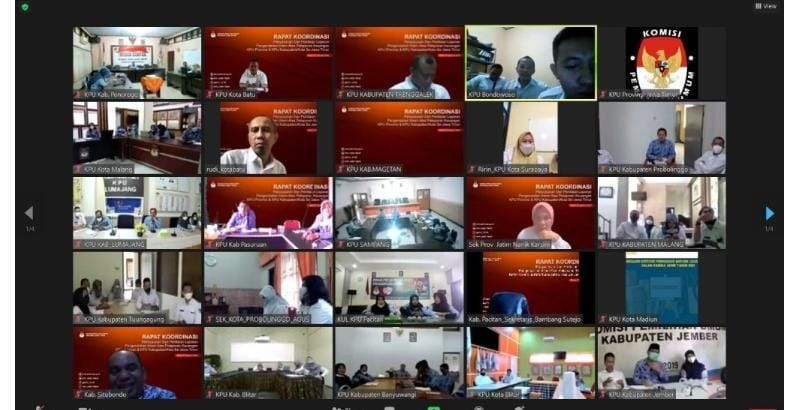 Pacitan, kab-pacitan.kpu.go.id – Dalam rangka mewujudkan tata kelola pemerintahan yang baik (good governance) KPU Provinsi Jawa Timur menyelenggarakan kegiatan “Penilaian dan Peninjauan Kembali Atas Self Assessment Monitoring Pelaksanaan Kegiatan dan Anggaran”. Kegiatan tersebut diikuti oleh sekretaris dan kasubag dari 38 KPU Kabupaten/ Kota se- Jawa Timur (Selasa, 18/1/2022). Sekretaris KPU Kabupaten Pacitan, Bambang Sutejo didampingi oleh seluruh kasubag dan sub koordinator serta operator menghadiri kegiatan ini. Sesuai jadwal, kegiatan daring ini dilaksanakan dengan dilakukan pembagian perkelas. Adapun mentor dari KPU Provinsi Jawa Timur. Acara yang dibuka Sekretaris KPU Jawa Timur Nanik Karsini, diisi dengan penilaian dan peninjauan kembali atas self assessment monitoring pelaksanaan kegiatan KPU Kabupaten/ Kota sesuai dengan breakout room masing- masing. Adapun KPU Kabupaten Pacitan bersama dengan KPU Kabupaten Mojokerto, Nganjuk, Ngawi, dan Pamekasan berada dalam 1 braekout room dengan mentor Ilma Fauziah, staf rendatin KPU Provinsi Jawa Timur. Masing- masing Kabupaten memaparkan instrument monitoring dan evaluasi kegiatan secara mandiri dengan menyertakan link bukti dukung. Penilaian tersebut berlangsung kurang lebih 60 menit untuk masing- masing Kabupaten/ Kota. (Tim Bakohumas KPU Pacitan)