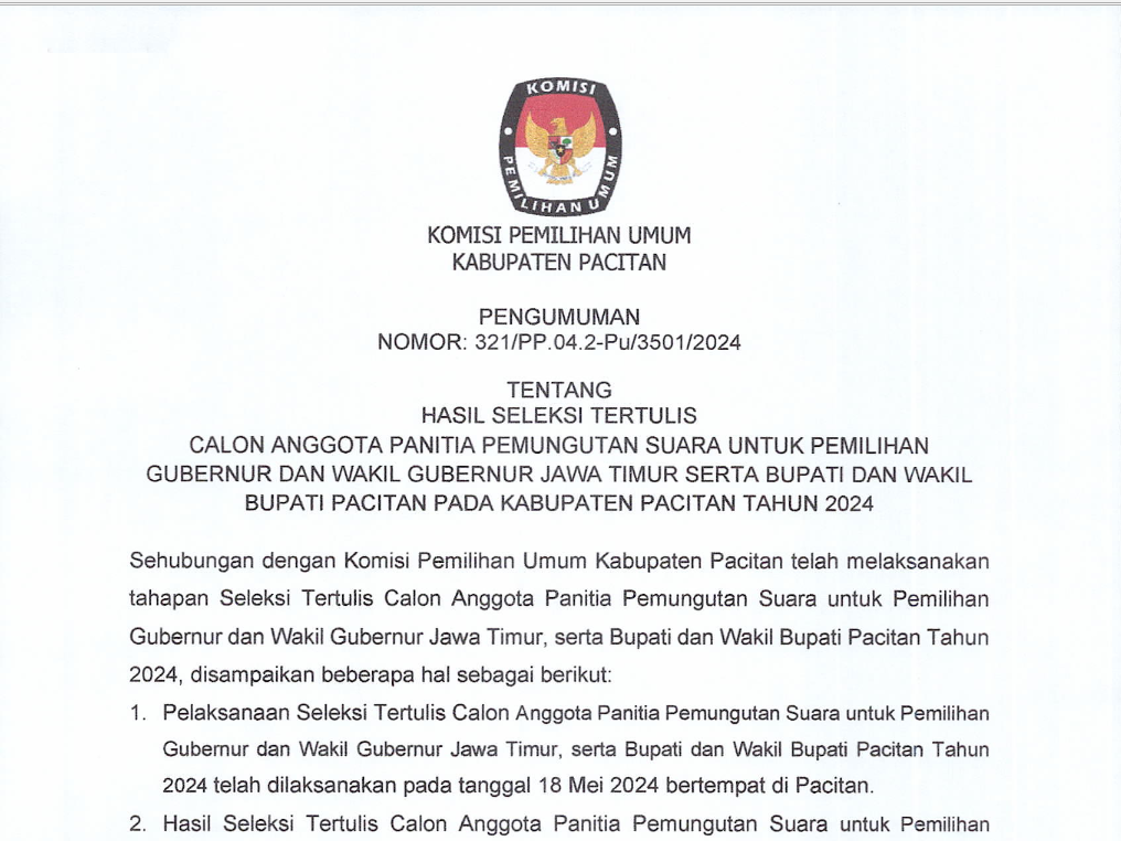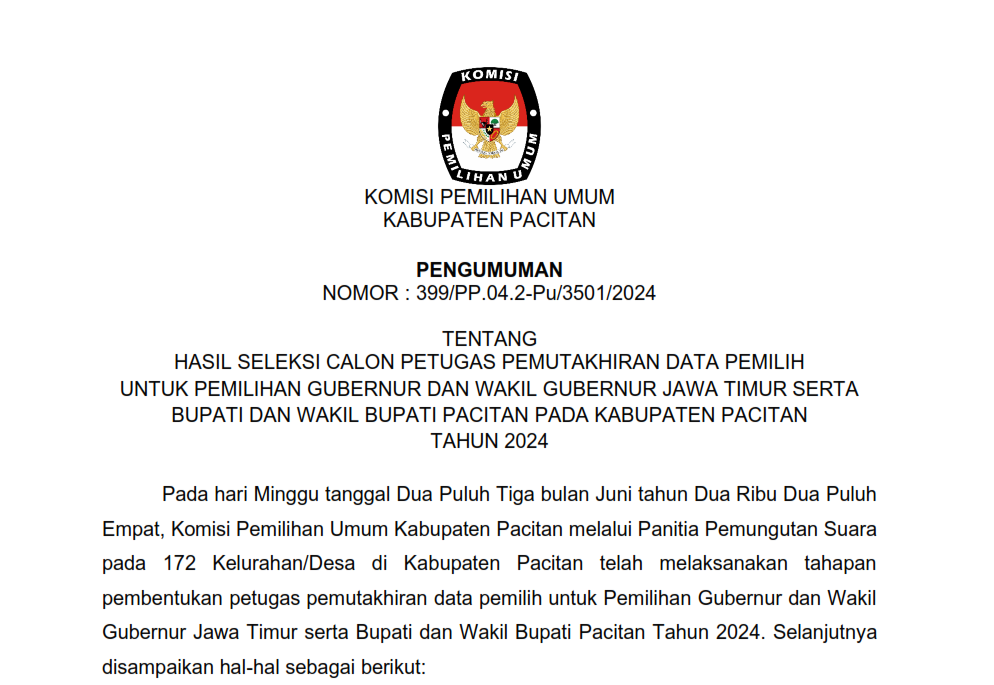 kab-pacitan.kpu.go.id - Pacitan, Hallo #TemanPemilih, Pembentukan Petugas Pemutakhiran Data Pemilih (PPDP) pada Pemilihan Gubernur dan wakil Gubernur Jawa Timur, Bupati dan Wakil Bupati Pacitan Tahun 2024 segera dibuka nih...