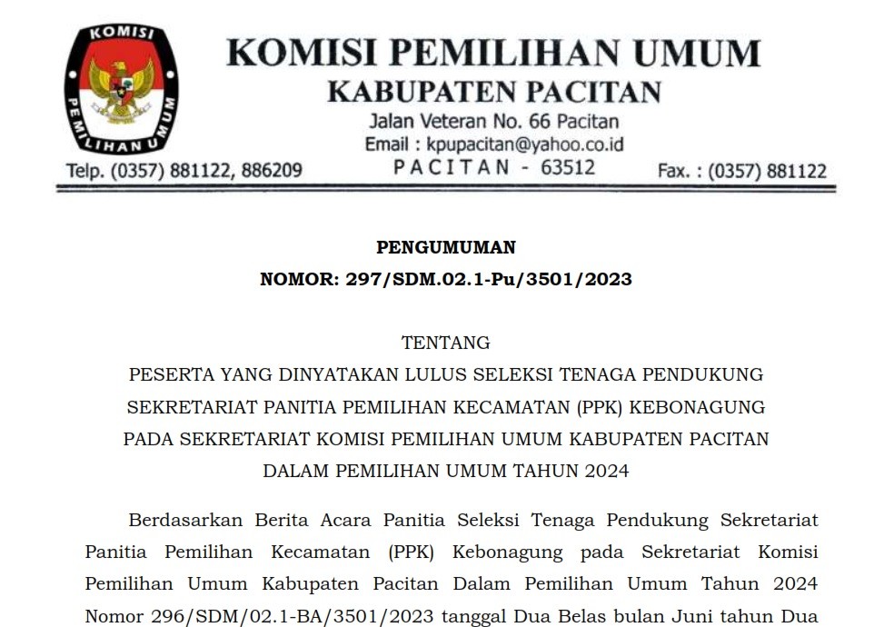 Download Pengumuman DCT DPRD Kabupaten Pacitan