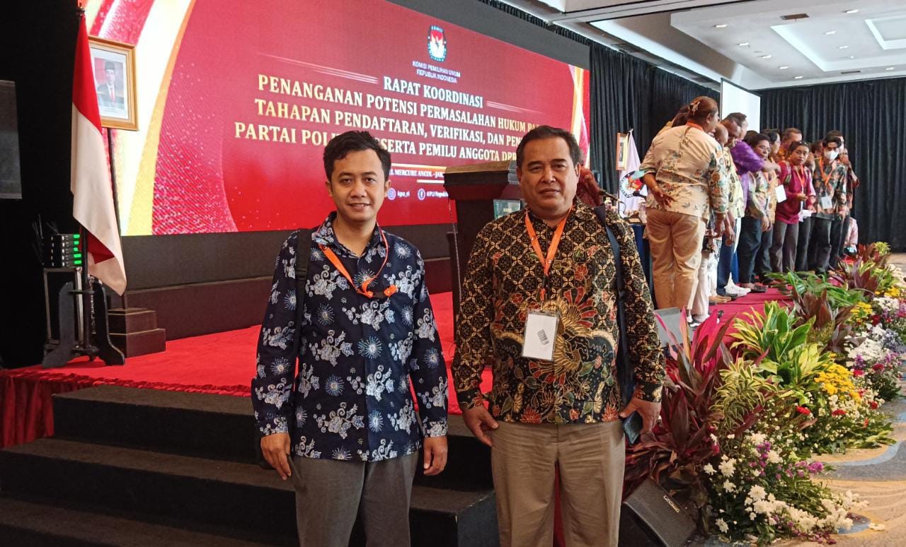 Caption Foto: Saya (kiri) bersama Danang Kuntadi, saat berada di tengah-tengah acara rapat koordinasi di Hotel Mercure, Ancol, Jakarta. Rakor Rasa “Temu Kangen” di Jakarta Oleh: Aswika B. Arfandy Syair mendung tanpo udan-awas apabila membaca sambil refleks nyanyi-lagu ciptaan Kukuh Prasetya Kudamai yang sempat dipopulerkan Ndarboy Genk dan Denny Caknan ini, sepertinya tidak berlaku pagi ini, Senin (8/8). Sebab, di Pacitan, mendungnya barengan dengan udan. Ditemani rintik hujan, pagi ini pula, saya baru saja datang dari Jakarta. Ya, pada Jumat (5/8) hingga Minggu (7/8), saya dan teman-teman divisi hukum pengawasan bersama kasubbag hukum dan SDM se-Indonesia mendapatkan undangan KPU RI. Untuk rapat koordinasi. Di Ancol. Kawasan wisata yang terkenal itu. Apa saja agendanya? Nanti dulu cerita tentang Jakarta-nya. Saya mulai tulisan ini dengan sedikit flashback kegiatan KPU Pacitan sepekan terakhir. Awal pekan, Senin (1/8), ada yang berbeda pada apel rutin KPU Pacitan. Ketua Bawaslu Pacitan Berty Stefanus HRW, didaulat menjadi pembina apel. Sengaja. Sebagai bangunan sinergi KPU-Bawaslu di daerah. Yang notabene sesama penyelenggara pemilu. Mantan sekretaris KPU Pacitan ini menekankan empat modal menjalankan tahapan pemilu. Yakni soliditas, integritas, mental dan profesional. Disingkat SIM-P. Setelah apel rutin “spesial” berakhir, kemesraan KPU-Bawaslu ini dilanjutkan dengan sarapan. Sebagaimana pepatah: awali pagi dengan sarapan. Sebab apabila diawali senyuman, agak siang dikit, sudah mulai lapar. Menu sarapannya pun istimewa. Khas Pacitan: nasi berkat! Teman-teman pembaca tahu apa itu nasi berkat? Semacam nasi bungkus. Dibungkus dengan daun jati. Nasi biasa. Topping-nya yang melimpah. Serundeng, oseng mie-tempe-pepaya-cabe, plus tukulan kacang tolo. Lauknya rempeyek, tempe dan telor goreng. Biasanya, makanan ini menjadi buah tangan. Saat hajatan pernikahan. Di desa-desa, di Pacitan. Duh, jadi kepingin! Kita lupakan dulu masalah nasi berkat. Usai apel, KPU Pacitan menggelar rapat pleno rutin. Untuk mengevaluasi kegiatan sepekan terakhir dan merencanakan agenda sepekan ke depan. Kegiatan lain pada sepekan terakhir, adalah standby di help desk pendaftaran, verifikasi dan penetapan parpol peserta pemilu. Layanan ini, dipusatkan di ruang rumah pintar pemilu (RPP) KPU Pacitan. Setiap harinya, anggota bawaslu Pacitan hadir menemani petugas piket help desk. Datang bergantian. Ruang layanan ini, dibuka sejak dimulainya tahapan pendaftaran, verifikasi dan penetapan parpol peserta pemilu. Pada awal Agustus 2022 ini. Selain itu, sepekan terakhir juga dilakukan roadshow di sejumlah perguruan tinggi di Pacitan. Semacam anjangsana. Agendanya hanya satu: persiapan penandatanganan kerja sama. Anjangsana pertama dilakukan di Sekolah Tinggi Keguruan dan Ilmu Pendidikan (STKIP) PGRI Pacitan. Saya, ketua dan divisi sosdiklih parmas SDM, diterima langsung Ketua STKIP PGRI Pacitan Dr Mukodi, M.Si. Bersama sejumlah unsur pimpinan lembaga ini. Mukodi menegaskan komitmen lembaganya untuk menyukseskan pemilu maupun pemilihan 2024. Sejumlah agenda juga menjadi obrolan hangat pagi itu. Ditemani teh hangat dan “teman-temannya”. Plus, aroma-aroma skripsi. Khususnya rencana rekrutmen badan adhoc dengan seleksi computer assisted test (CAT). Yang pernah dilaksanakan pula sebelumnya. Saat seleksi badan adhoc pemilihan bupati dan wakil bupati Pacitan tahun 2020. Usai dari STKIP, rombongan kami beranjak ke Institut Studi Islam Muhammadiyah (ISIMU). Diterima langsung oleh pak rektor Dr Ahmadi, M.Pd.I. Dengan semangat yang sama, Ahmadi menegaskan lembaganya siap menjadikan pemilu dan pemilihan 2024, makin berkualitas. Termasuk, rencana kerjasama riset mengenai kepemiluan di Pacitan. Apalagi, kampus ini juga memiliki jurnal yang keren. Namanya At-Tajdid. Terakreditasi Sinta (science and technology index) 4 dari Kementerian Pendidikan dan Kebudayaan. Tidak berhenti di dua lembaga tersebut. Roadshow diteruskan ke Sekolah Tinggi Agama Islam Al Fattah (STAIFA). Diterima langsung ketuanya: Dr Heri Cahyono Putro, M.Pd. STAIFA merupakan bagian dari lembaga pendidikan pondok pesantren Al Fattah di Kecamatan Arjosari. Selanjutnya menuju Sekolah Tinggi Agama Islam Nahdlatul Ulama (STAINU). Diterima Ketua STAINU Muh Syuhada’ Subir, SH.I, MA dan unsur pimpinan dari lembaga pendidikan tinggi naungan NU Pacitan tersebut. Serta berakhir di Ma’had Aly Al-Tarmasi. Lembaga pendidikan tinggi naungan perguruan Islam pondok Tremas ini, KPU Pacitan diterima Zanuar Mubin, M.E, sekretaris lembaga ini. Serta beberapa pengurus lainnya. Kamis (4/8) malam, ketua, divisi sosdiklih parmas SDM dan divisi perencanaan data dan informasi, melakukan sosialisasi tahapan pemilu 2024 kepada organisasi perempuan: forum alumni HMI-wati (Forhati) Pacitan. Ini merupakan kegiatan tematik KPU Pacitan. Khususnya dengan sasaran komunitas pemilih perempuan. Sedangkan saya, berangkat ibu kota! Saya ke Jakarta bersama Danang Kuntadi, kasubbag hukum dan SDM KPU Pacitan serta driver kantor bernama Warimin. Jumat (5/8), hari pertama di Jakarta, acara dimulai dengan pembukaan. Acara ini diikuti 1130 peserta. Terdiri dari 102 orang dari KPU Provinsi (masing-masing 34 orang komisioner, kabag dan kasubbag) serta 1028 dari KPU Kabupaten/Kota (masing-masing 514 orang komisioner dan kasubbag). Begitu kata Deputi Bidang Dukungan Teknis KPU RI Eberta Kawima, saat menyampaikan laporan kegiatan. Seluruhnya duduk dalam satu ruang besar. Besar sekali. Mungkin di Pacitan, belum ada ruangan indoor sebesar itu. Bahkan bisa dibuat beberapa petak lapangan futsal. Dari Aceh sampai Papua. Semua menyatu dalam kebersamaan melalui forum yang dipusatkan di Hotel Mercure Ancol tersebut. Acaranya benar-benar meriah dan keren. Judul besarnya: Rapat Koordinasi Penanganan Potensi Permasalahan Hukum pada Tahapan Pendaftaran, Verifikasi dan Penetapan Partai Politik Peserta Pemilu Anggota DPR dan DPRD. Kesempatan ini, sekaligus ajang “temu kangen” divisi hukum dan kasubbag hukum se-Jatim pada k
